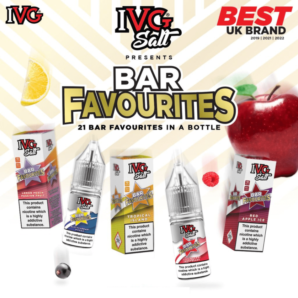 At VapeHub, we offer a huge selection of disposable vape devices, kits and e-liquids. Within the IVG Bar Favourites Nicotine Salts range, there is a huge selection of fantastic flavours to choose from: